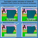Your students will love these Arkansas Alphabet Flash Cards, A-Z. These alphabet flash cards are for early readers: Pre-K, Kindergarten, 1st grade, and 2nd grade.