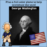 Your students will love completing this George Washington mini book. This mini book is for early readers: Pre-k, Kindergarten and 1st Grade. This George Washington mini book lets students read easy words and pair them with the scene on the page. Students can color in the pages for some fun!
